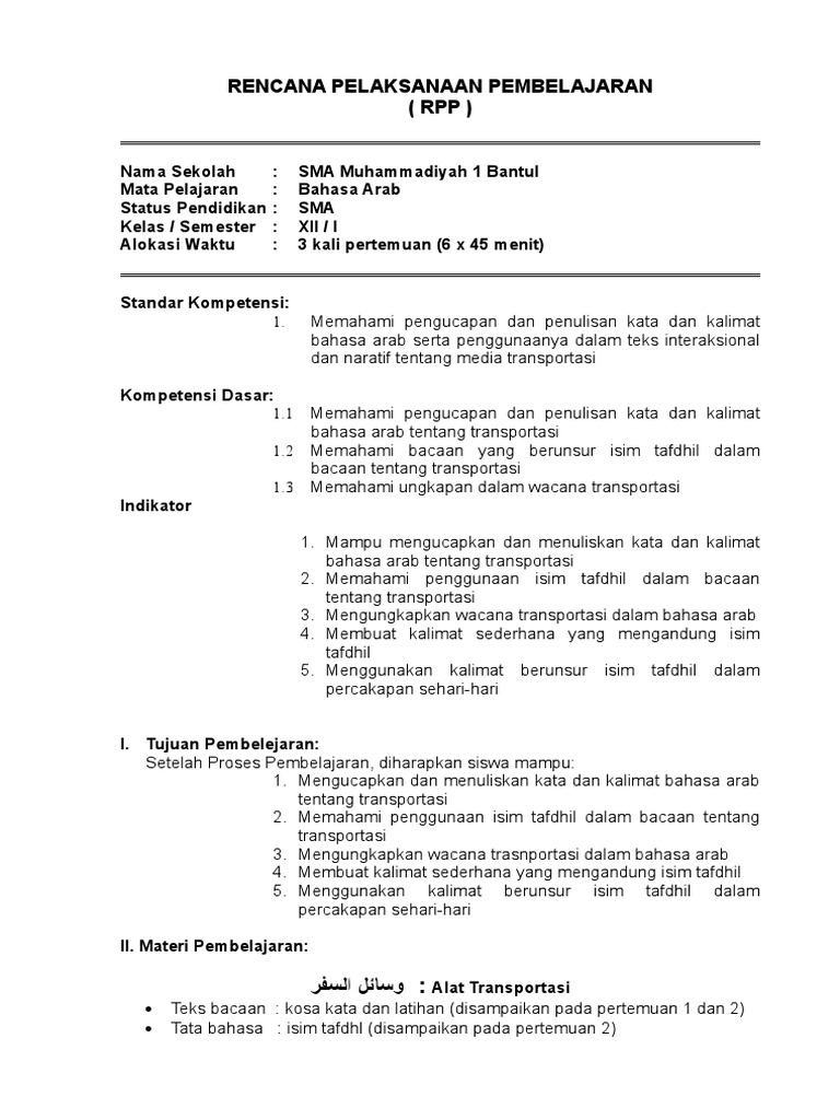 Doc Rpp Bahasa Arab Kelas Vii Maya Lailatussaidah Academia Edu