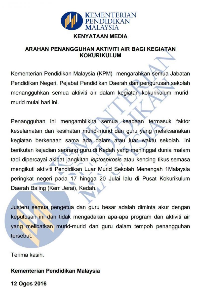 Skpanji Kpm Penangguhan Aktiviti Air Bagi Kegiatan Kokurikulum