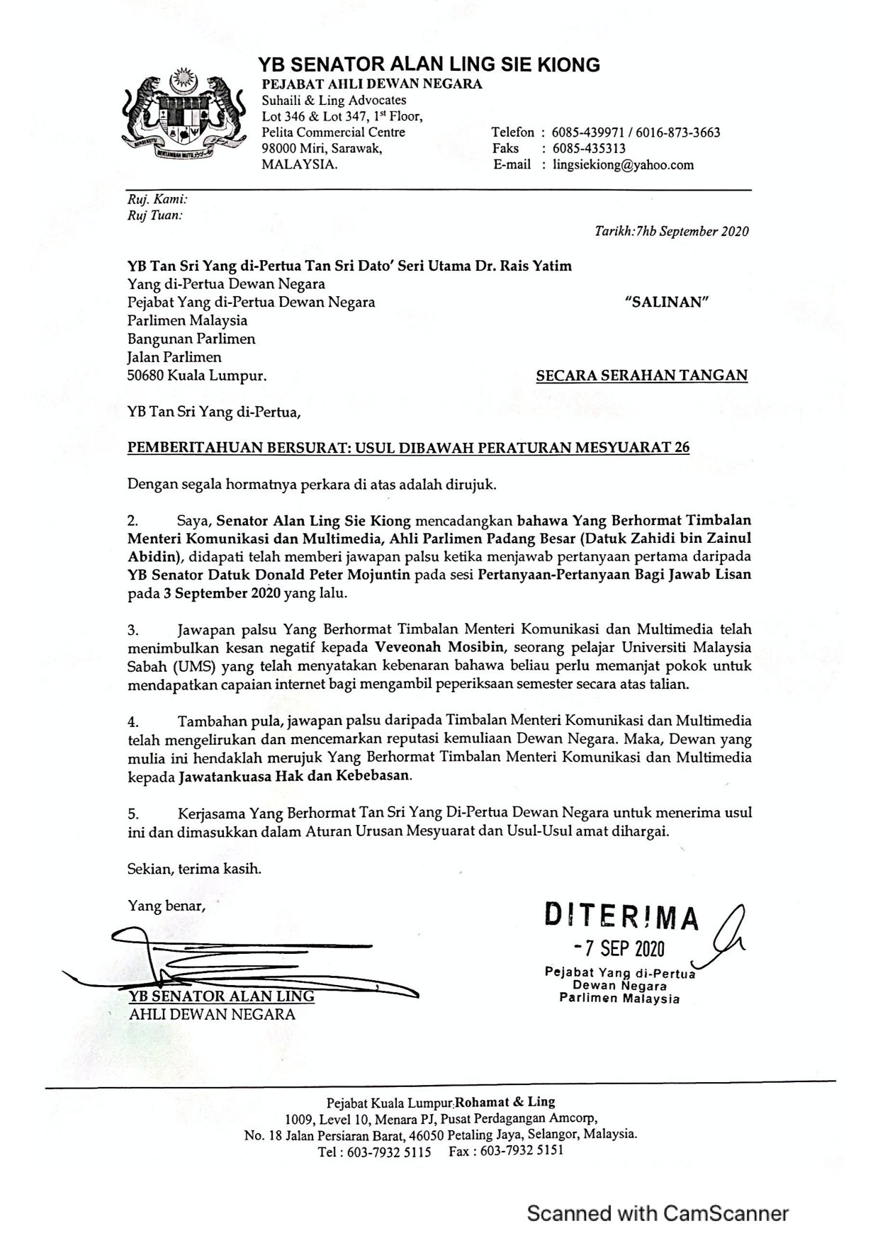 Emmanuel Samarathisa On Twitter Just In Senator Alan Ling Sie Kiong Of Dap Submits A Motion Against Padang Besar Mp Deputy Comms Multimedia Minister Zahidi Zainul Abidin For Providing A False Answer