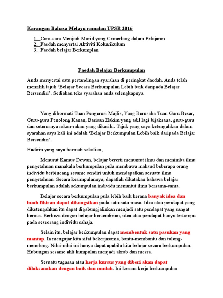 Karangan Bahasa Melayu Ramalan Upsr 2016