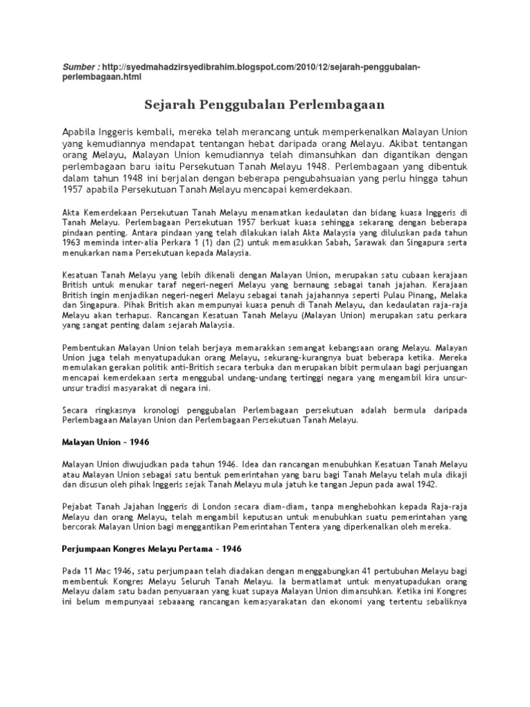 Pengajian Am Perlembagaan Malaysia 2 1 Sejarah Penggubalan Perlembagaan