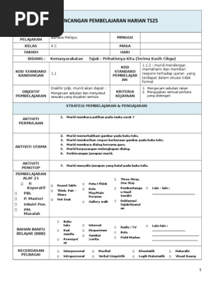 Rph bahasa melayu tingkatan 2 ts25. Rph bm tahun 3 ts25. Aktiviti pengajaran yang telah disusun dalam rancangan pengajaran harian rph membantu guru menyampaikan isi kandungan pelajaran dengan mudah. Rph pendidikan islam tahun 1 ts25.